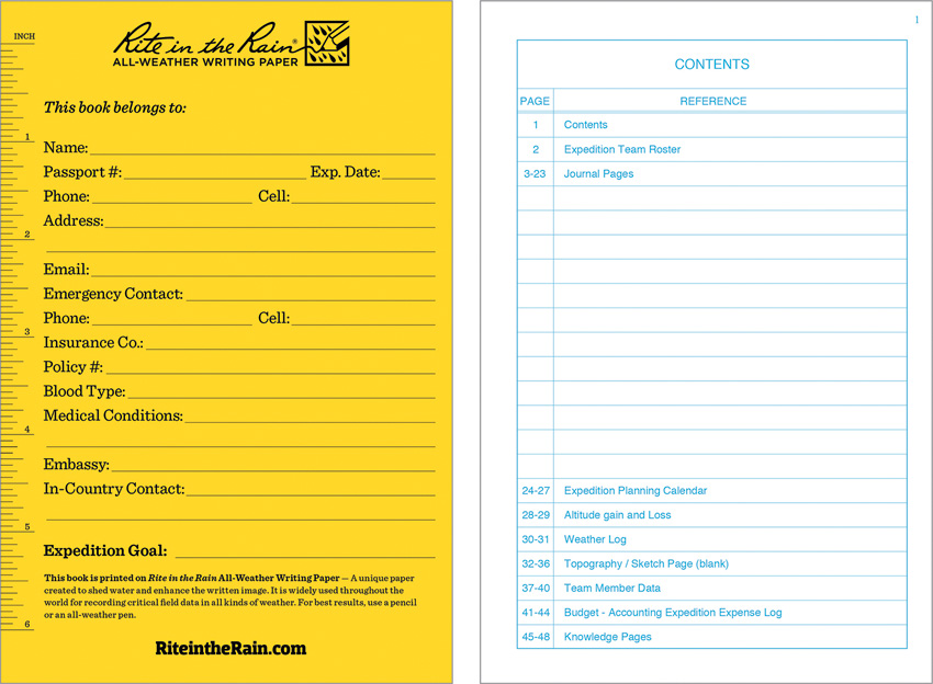 Dimensions: 4.63″ x 7″. Yellow stapled field-flex cover. Includes climbing tables, emergency procedures, journal pages, and weather log. 48 pages, 32 sheets. Imperial and metric rulers, photoscale, and title/contact form. Bulk packed.