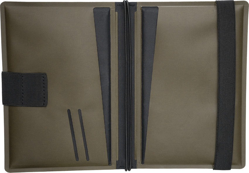Dimensions: 5.5″ x 7.88″ x 1″. Gear loop on spine. Secure elastic closure strap. Exterior/interior pen loop. Rugged TPU shell. Notebook cover pockets and spine holds. Two interior card slots. Extra pen loop. Hang packaged.