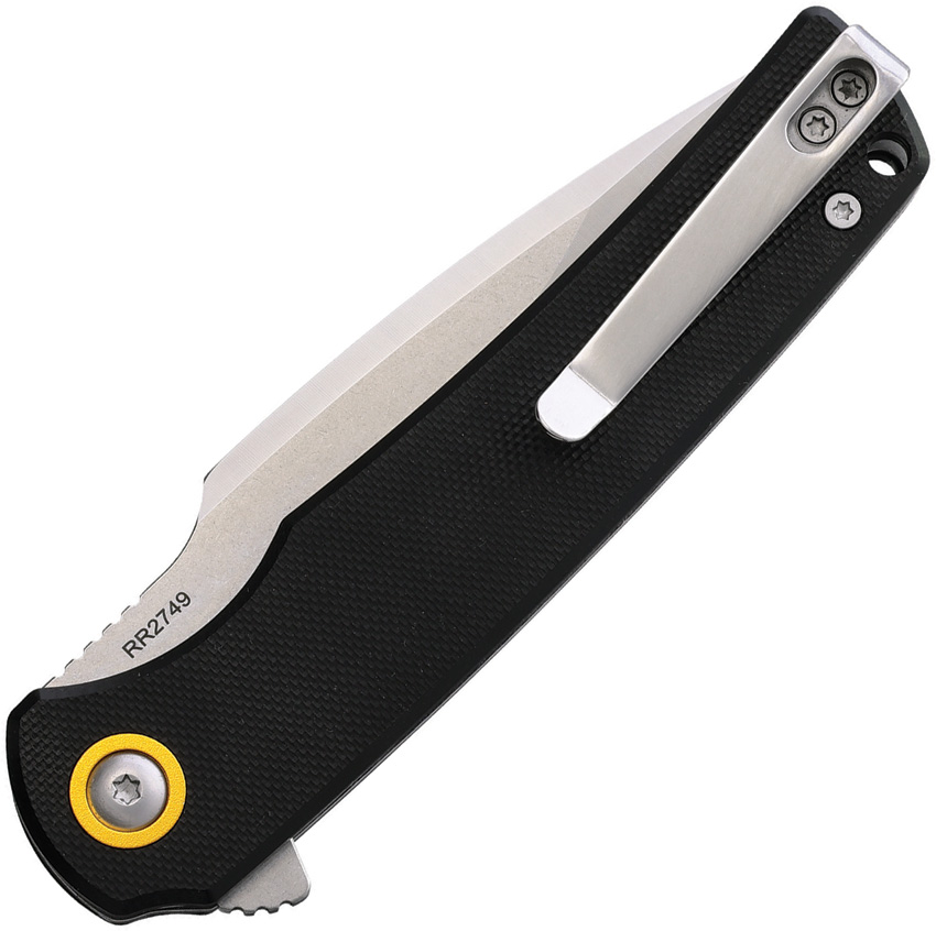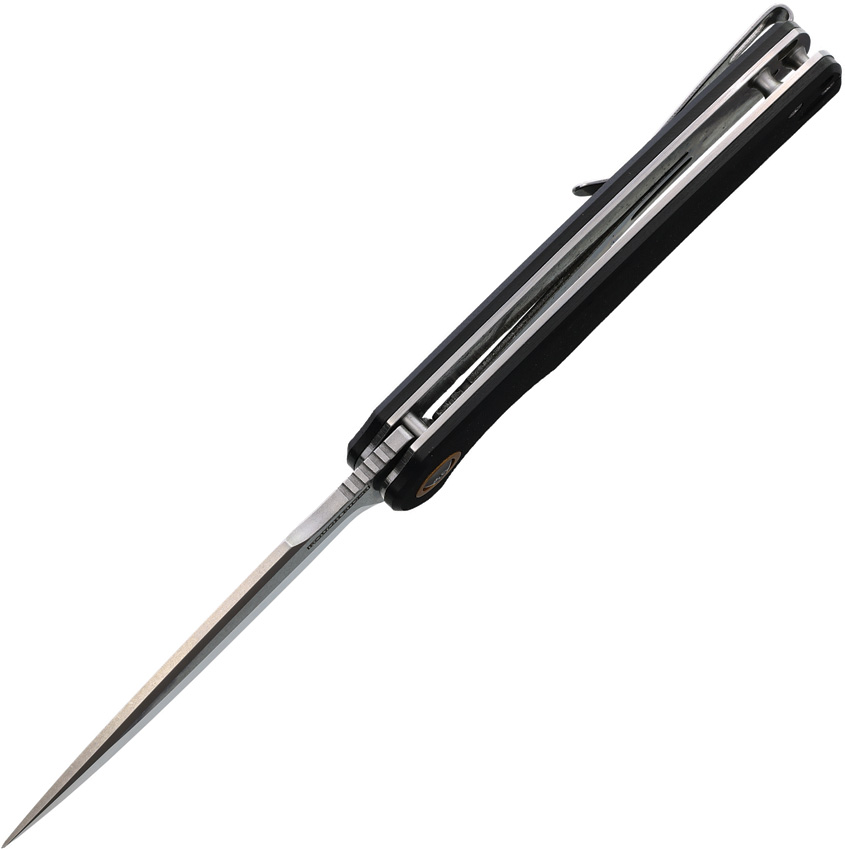 4.5″ (11.43cm) closed. 3.5″ (8.89cm) stonewash and satin finish stainless drop point blade. Black G10 handle. Extended tang. Lanyard hole. Pocket clip. Boxed.