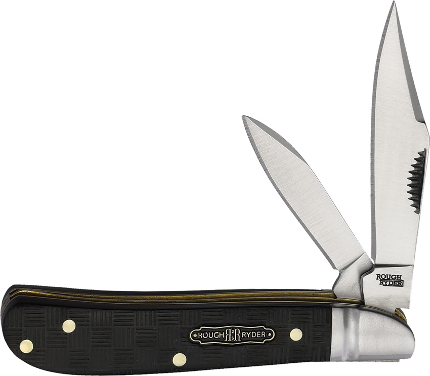 2.75″ (6.99cm) closed. Satin finish stainless clip and pen blades. Black pakkawood handle. Stainless bolster(s). Inlay shield. Boxed.