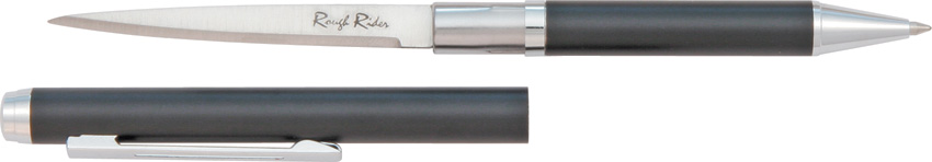 5.5″ overall. Black finish metal body. Black ink. Unscrew cap to reveal 2.25″ stainless knife blade. Boxed.