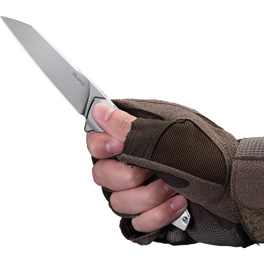 4.25″ (10.8cm) closed. 3.25″ (8.26cm) satin finish 14C28N Sandvik stainless blade. Gray stainless handle. Extended tang. Lanyard hole. Pocket clip. Boxed.