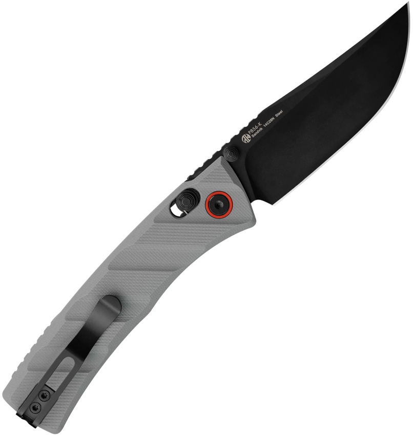 4.25″ (10.8cm) closed. 3″ (7.62cm) black finish 14C28N Sandvik stainless clip point blade. Gray G10 handle. Thumb stud. Pocket clip. Boxed.
