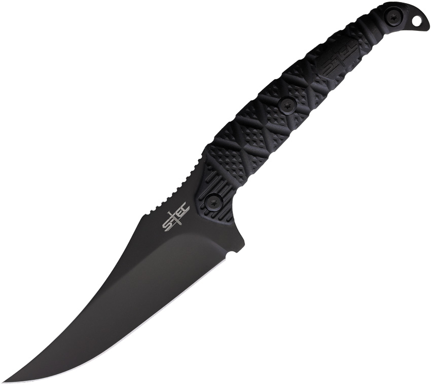 9.5″ (24.13cm) overall. 4.5″ (11.43cm) black finish stainless upswept blade. Black textured synthetic handle. Full, extended tang. Lanyard hole. Black Kydex belt sheath. Boxed.