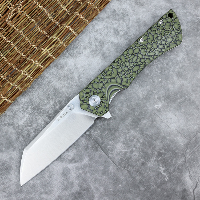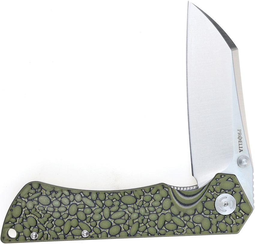 4.75″ (12.07cm) closed. 3.75″ (9.53cm) satin finish 7Cr17MoV stainless blade. Green textured G10 handle. Thumb stud. Lanyard hole. Extended tang. Pocket clip. Boxed.