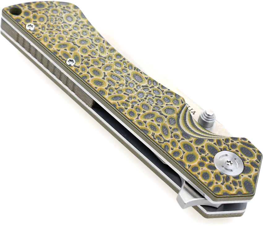 4.75″ (12.07cm) closed. 3.75″ (9.53cm) satin finish 7Cr17MoV stainless blade. Orange and black textured G10 handle. Thumb stud. Lanyard hole. Extended tang. Pocket clip. Boxed.