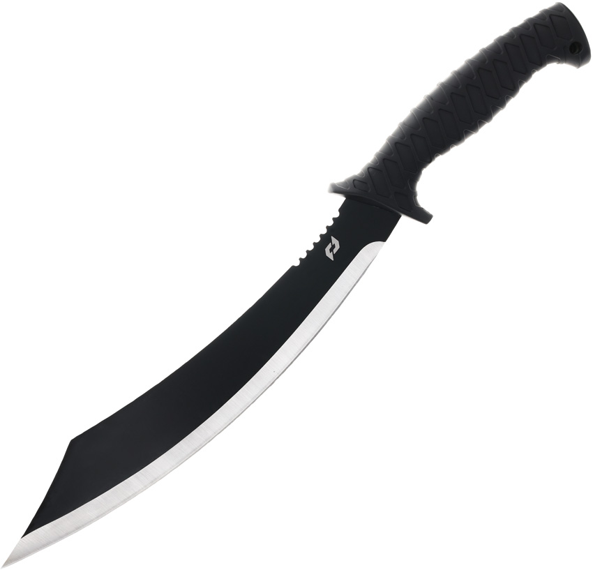 18″ (45.72cm) overall. 12″ (30.48cm) black oxide coated 3Cr13 stainless blade. Black rubber handle. Full tang. Black polyester belt sheath. Clam packed.