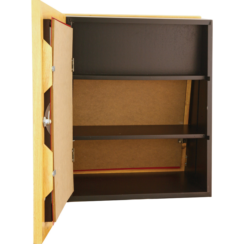 Dimensions: 11″ x 17.5″ x 21.5″. Sturdy construction. Locking display. Magnetic. Knives not included.