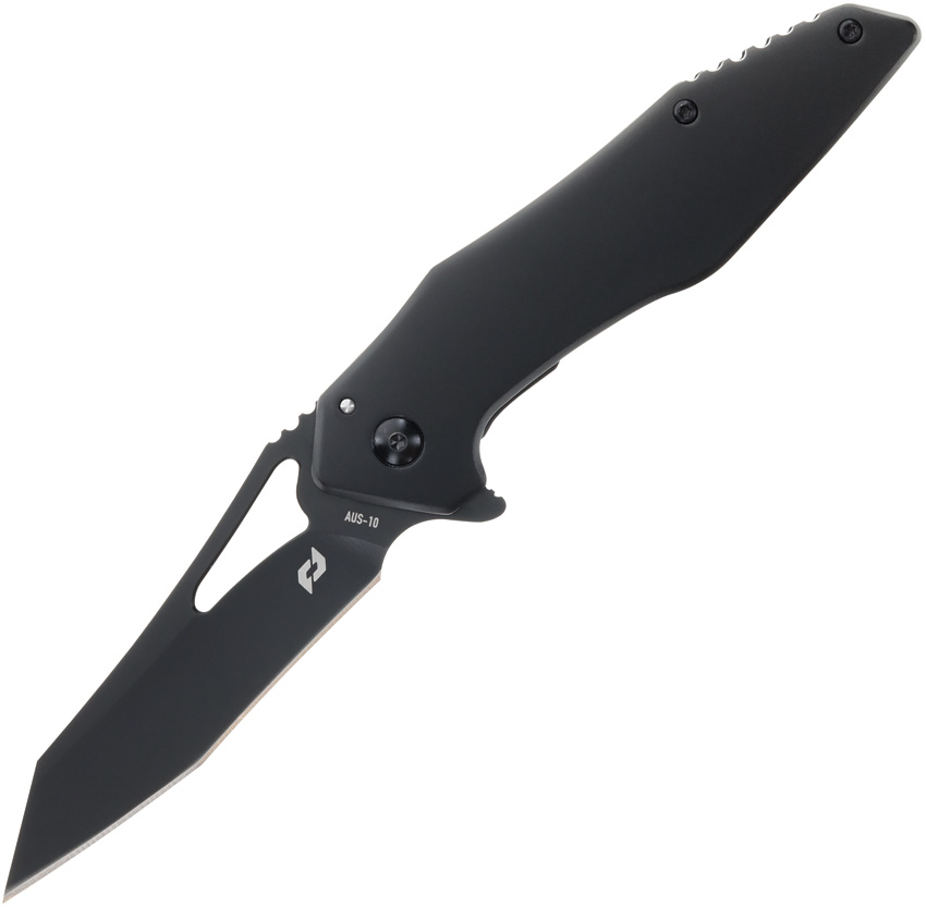 4.75″ (12.07cm) closed. 3.5″ (8.89cm) black oxide coated AUS-10A stainless Wharncliffe blade. Black aluminum handle. Extended tang. Thumb pull. Pocket clip. Clam packed.