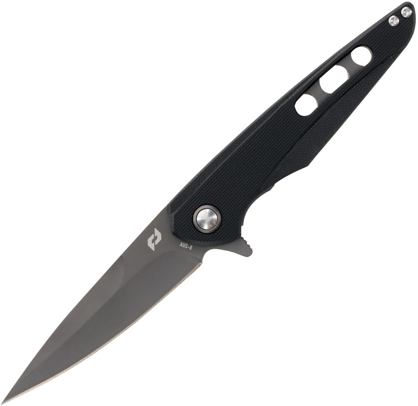 4.25″ (10.8cm) closed. 3″ (7.62cm) black TiNi coated AUS-8 stainless blade. Black G10 handle. Extended tang. Pocket clip. Clam packed.