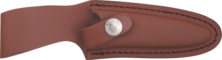 7 1/4″ overall. 3 1/2″ stainless guthook blade. Full tang. Brown sawcut Delrin handles with Old Timer inlay shield. Brown leather belt sheath.