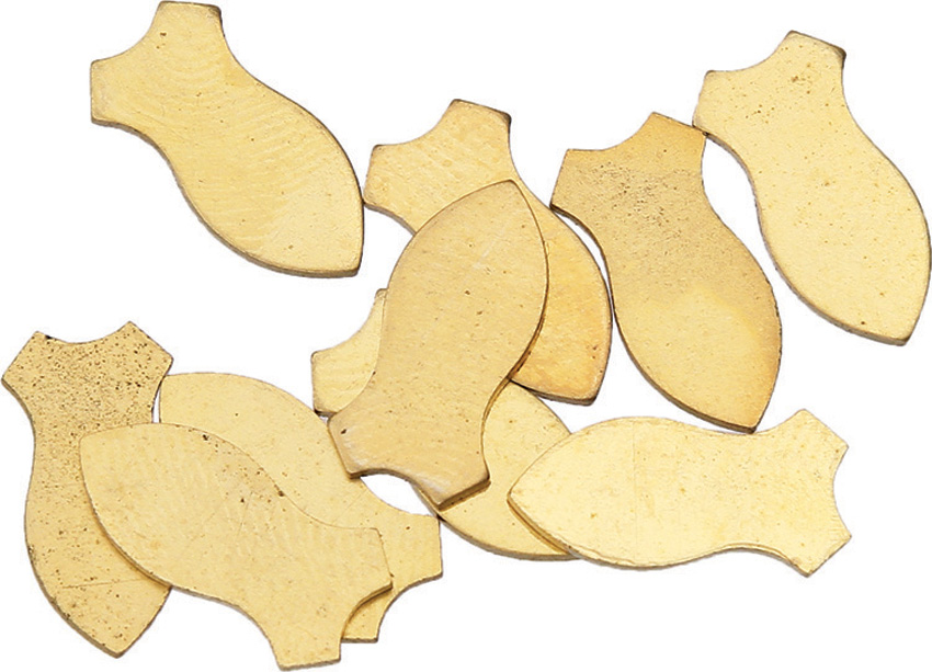 Fish design. Brass finish. 1/2″ overall. No embossing. Package of 10.