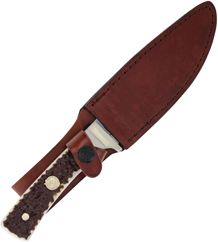10″ (25.4cm) overall. 5.25″ (13.34cm) satin finish 7Cr17MoV stainless clip point blade. Full tang. NextGen Staglon handle. Brown leather belt sheath. Clam packed.