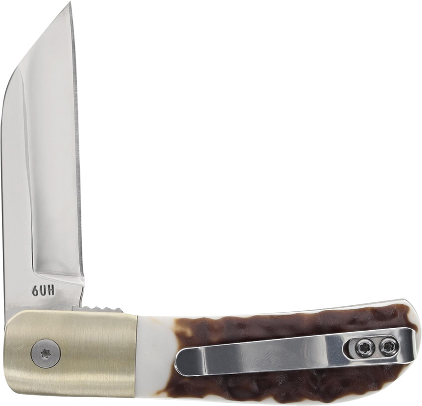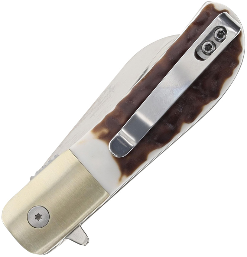 Assisted opening. 3.5″ (8.89cm) closed. 2.5″ (6.35cm) satin finish 7Cr17MoV stainless Wharncliffe blade. NextGen Staglon handle. Nickel silver bolster(s). Extended tang. Pocket clip. Inlay shield. Clam packed.