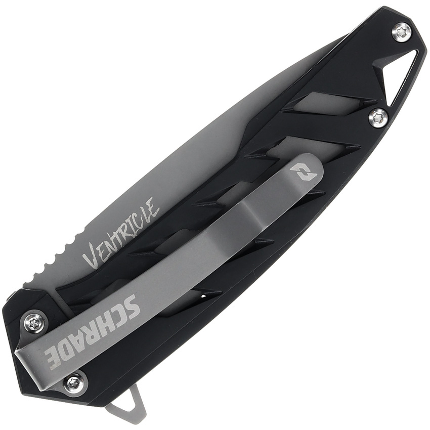 4″ (10.16cm) closed. 3″ (7.62cm) gray TiNi coated partially serrated AUS-10A stainless tanto blade. Black stainless handle. Extended tang. Lanyard hole. Pocket clip. Clam packed.