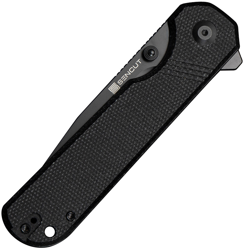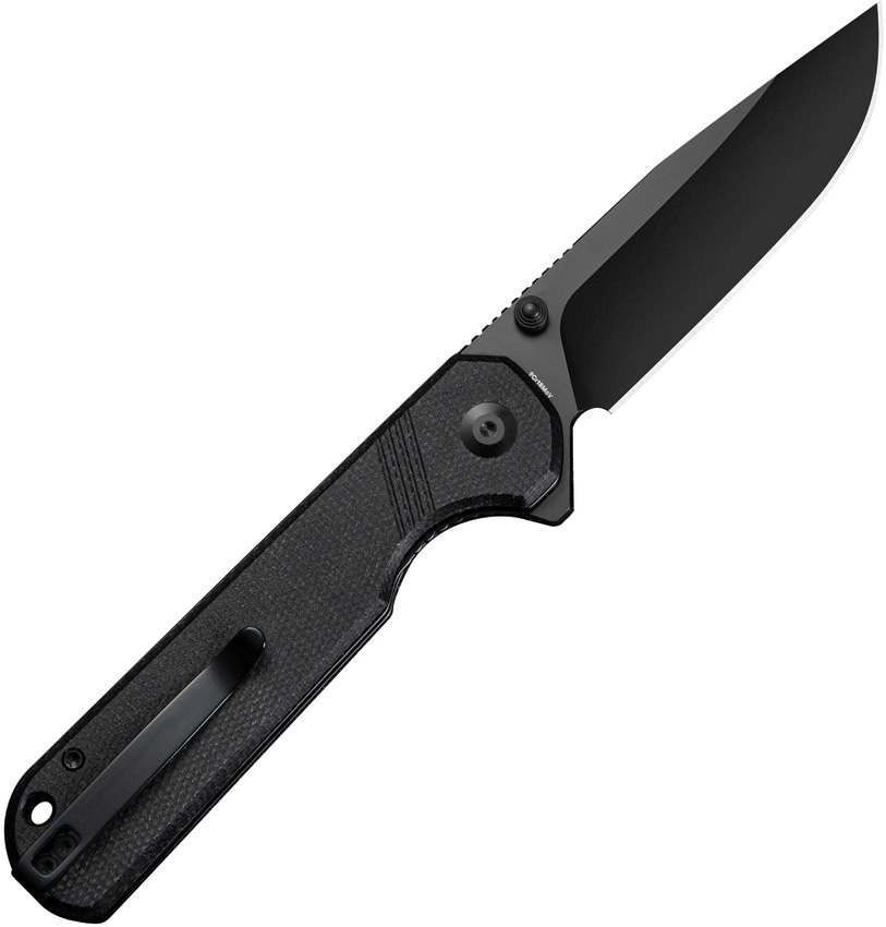 4.88″ (12.4cm) closed. 3.63″ (9.22cm) black finish 9Cr18MoV stainless clip point blade. Black canvas micarta handle. Extended tang. Thumb stud. Lanyard hole. Pocket clip. Black nylon zippered storage case. Boxed.