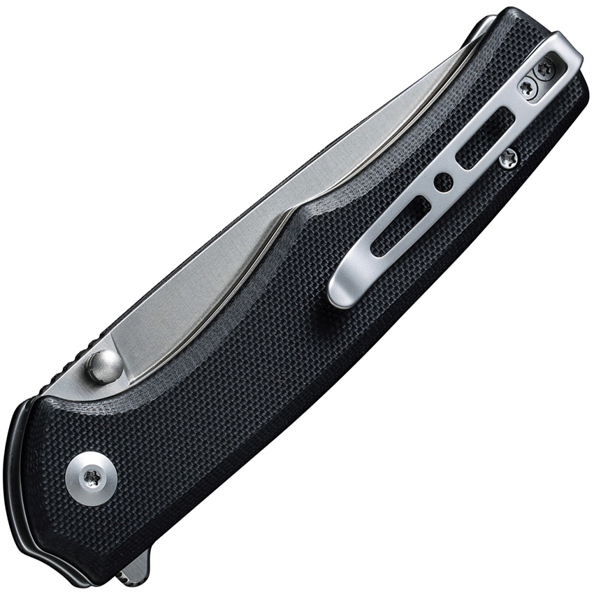 4.5″ (11.43cm) closed. 3.5″ (8.89cm) satin finish D2 tool steel blade. Black G10 handle. Extended tang. Pocket clip. Thumb stud. Black nylon zippered storage case. Boxed.