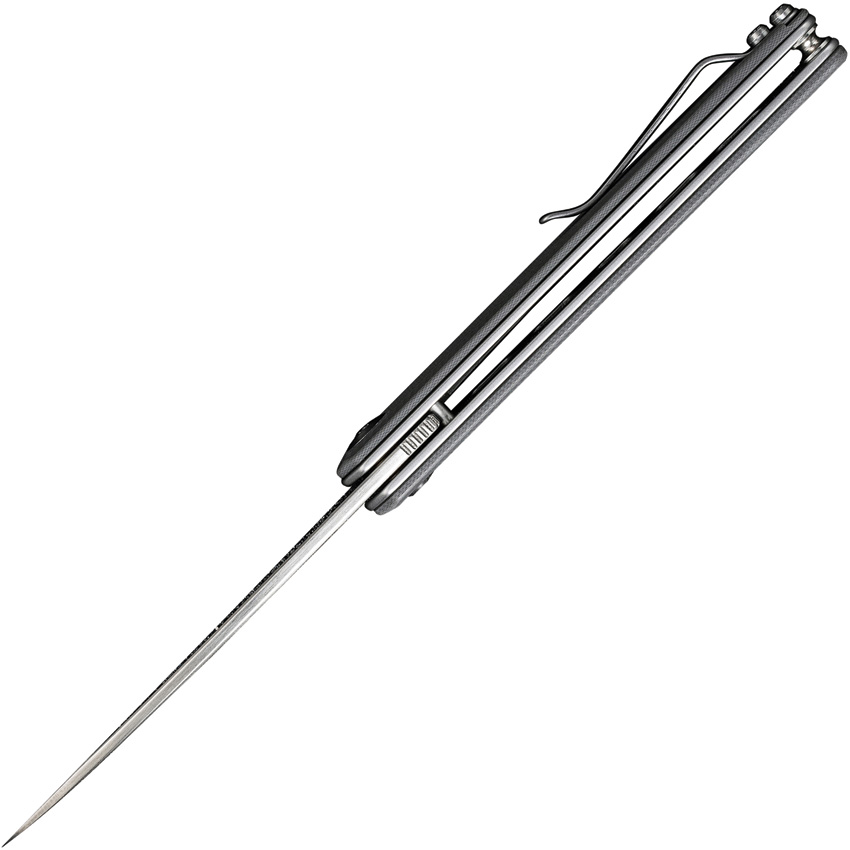 3.88″ (9.86cm) closed. 3″ (7.62cm) satin finish D2 tool steel Wharncliffe blade. Gray G10 handle. Extended tang. Pocket clip. Black nylon zippered storage case. Boxed. Sales Restriction: No Amazon.com Sales.