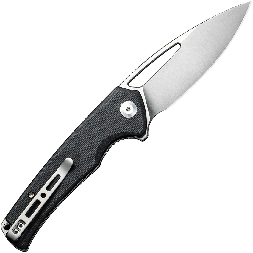 4.5″ (11.43cm) closed. 3.5″ (8.89cm) satin finish 9Cr18MoV stainless blade. Black G10 handle. Extended tang. Thumb pull. Pocket clip. Lanyard hole. Black nylon zippered storage case. Boxed.