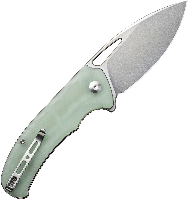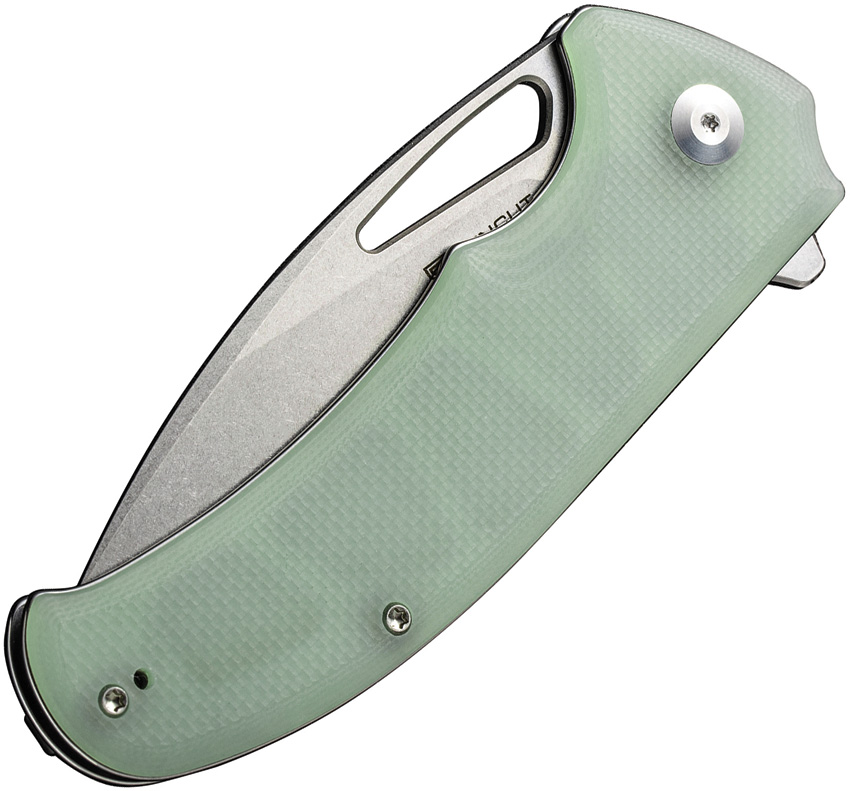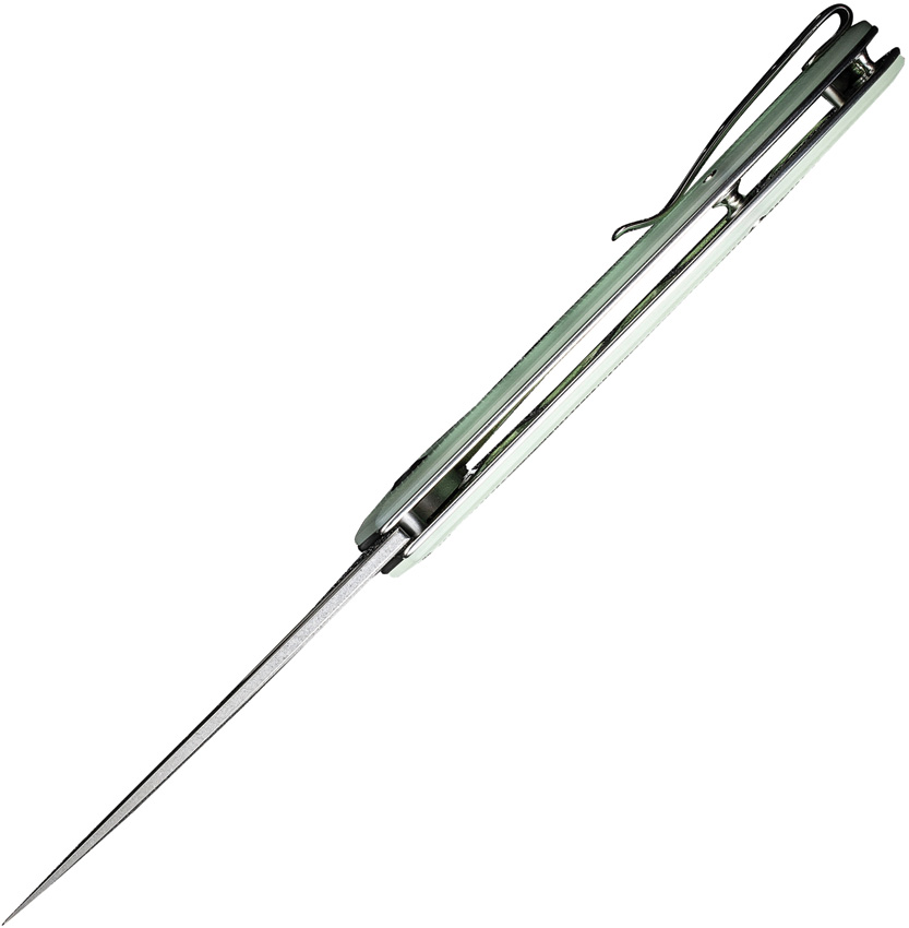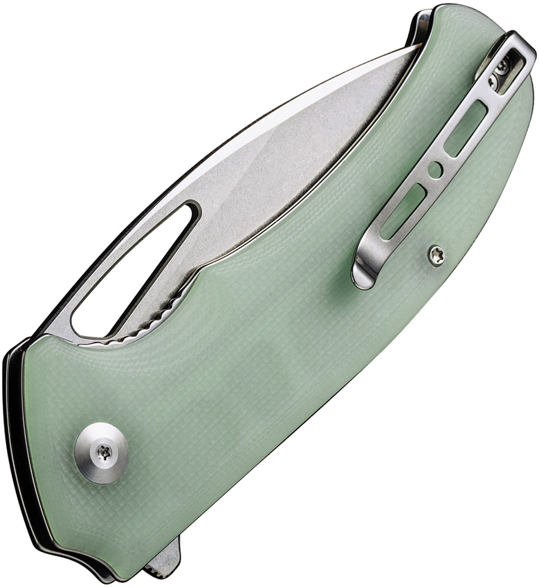 5″ (12.7cm) closed. 3.75″ (9.53cm) stonewash finish 9Cr18MoV stainless drop point blade. Jade G10 handle. Extended tang. Thumb pull. Pocket clip. Black nylon zippered storage case. Boxed. Sales Restriction: No Amazon.com Sales.