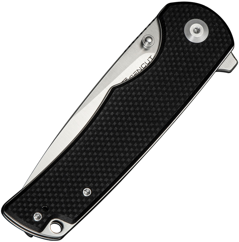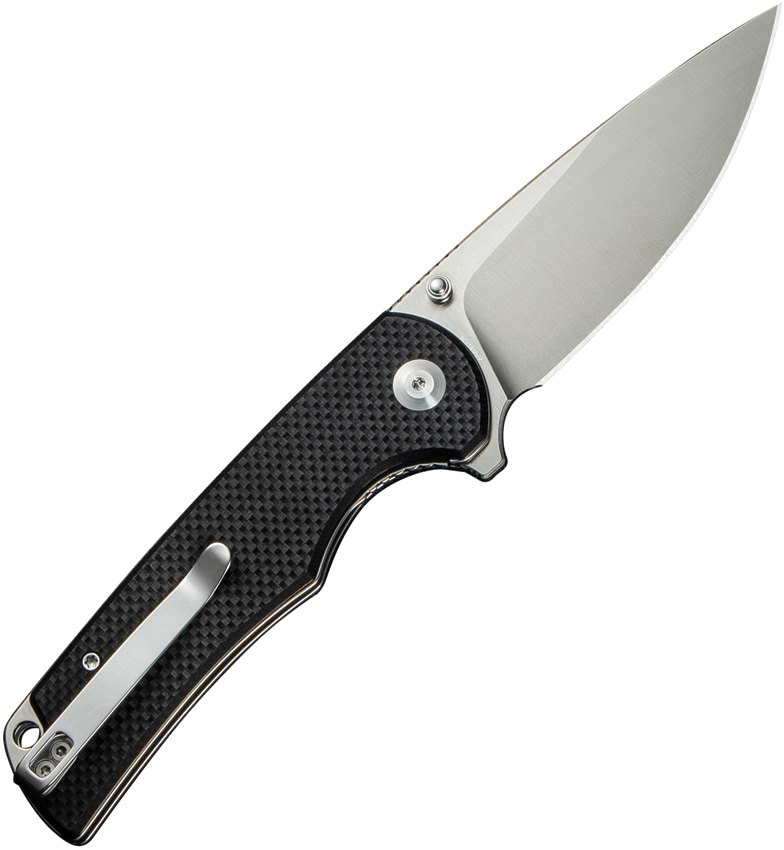 4.63″ (11.76cm) closed. 3.63″ (9.22cm) satin finish 9Cr18MoV stainless drop point blade. Black G10 handle. Extended tang. Thumb stud. Lanyard hole. Pocket clip. Black nylon zippered storage case. Boxed.