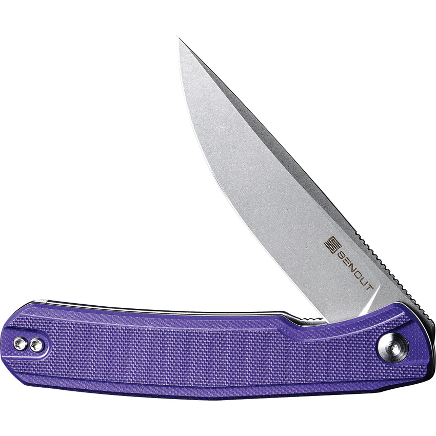 4.5″ (11.43cm) closed. 3.5″ (8.89cm) stonewash finish D2 tool steel blade. Purple G10 handle. Extended tang. Pocket clip. Black nylon zippered storage case. Boxed.