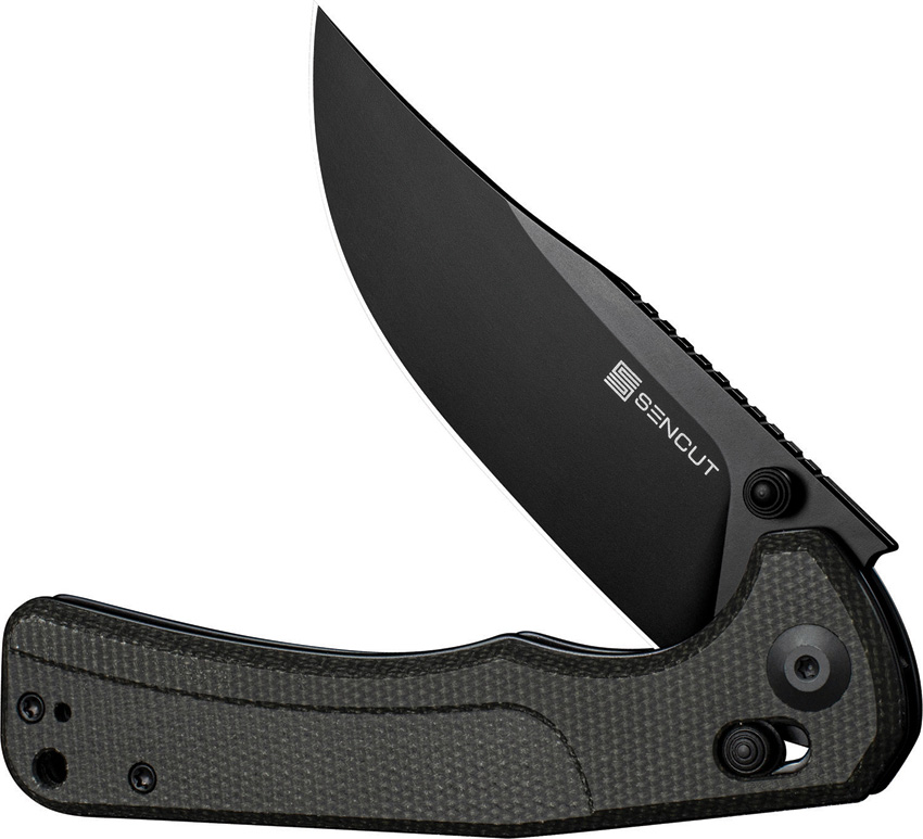 4.63″ (11.76cm) closed. 3.63″ (9.22cm) black finish 9Cr18MoV stainless clip point blade. Dark green canvas micarta handle. Thumb stud. Lanyard hole. Pocket clip. Boxed.