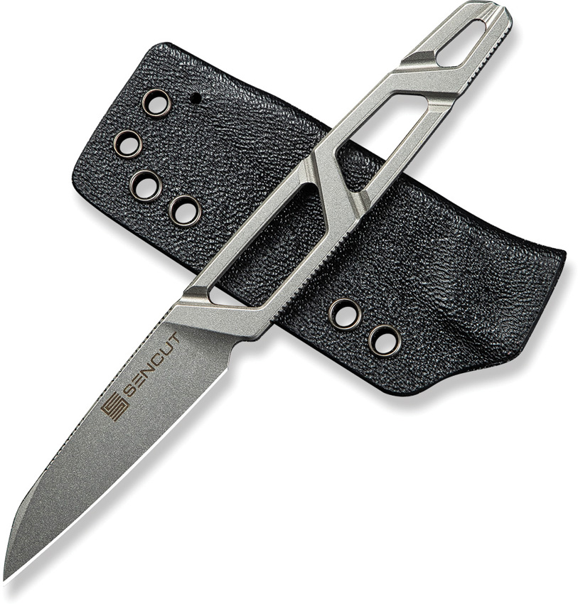 5″ (12.7cm) overall. 2″ (5.08cm) stonewash finish 9Cr18MoV stainless blade. Skeletonized handle. One-piece construction. Lanyard hole. Ball chain lanyard. Black braided cord lanyard. Black Kydex neck sheath. Boxed.