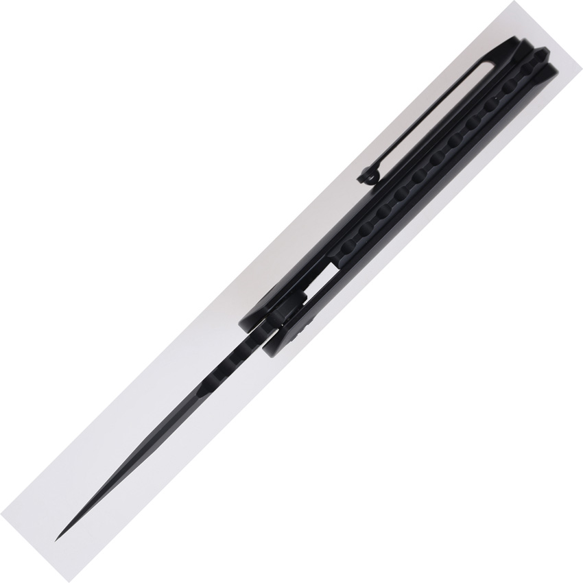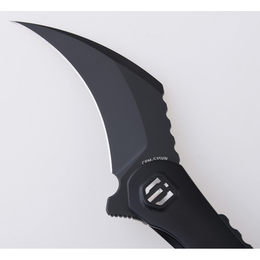 4.13″ (10.49cm) closed. 3″ (7.62cm) black DLC coated CPM S35VN stainless blade. Black G10 handle. Extended tang. Pocket clip. Boxed.