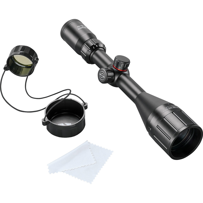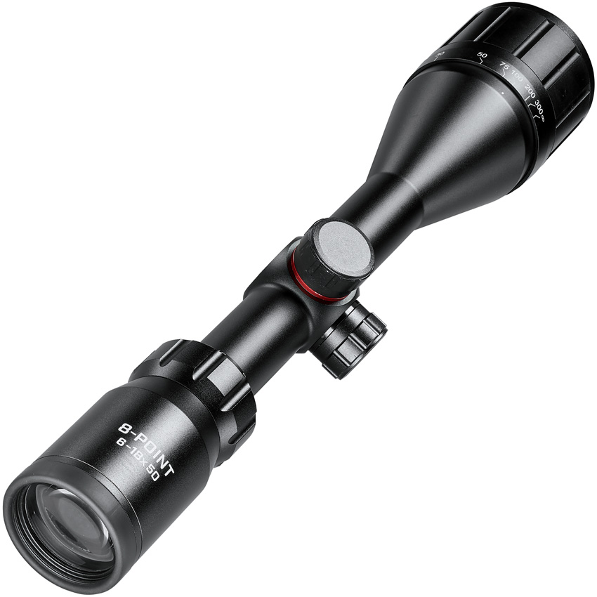 13.25″ overall. Truplex reticle. Actual magnification: 6-18x. Waterproof. Fogproof. Shockproof. Coated optics. 1″ Weaver style rings. SureGrip audible-click windage and elevation adjustments. Aluminum construction. Color: Black.