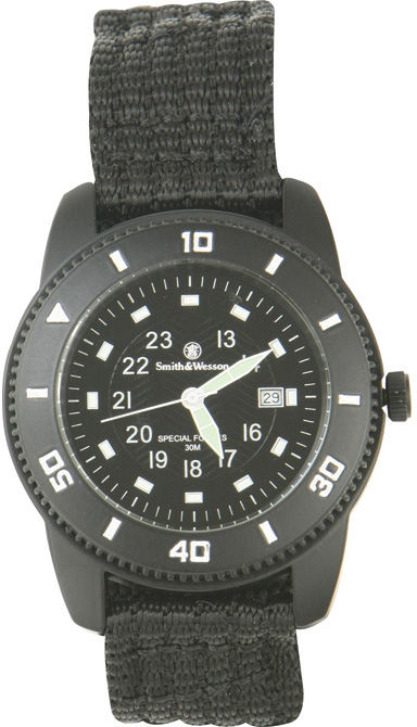Black face. Luminous markers. Black finish stainless construction. Military time inset. Rotating bezel. Water resistant to 30m. Black nylon wrist band. These watches feature: Luminous hands and stainless markers. Water resistant to 300 feet. Second hand and date. Japanese quartz movement.