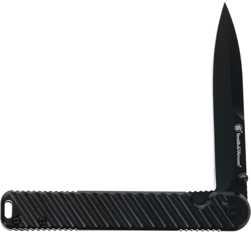 4.5″ (11.43cm) closed. 3.5″ (8.89cm) black finish stainless spear point blade. Black sculpted aluminum handle. Thumb stud. Lanyard hole. Pocket clip. Boxed.