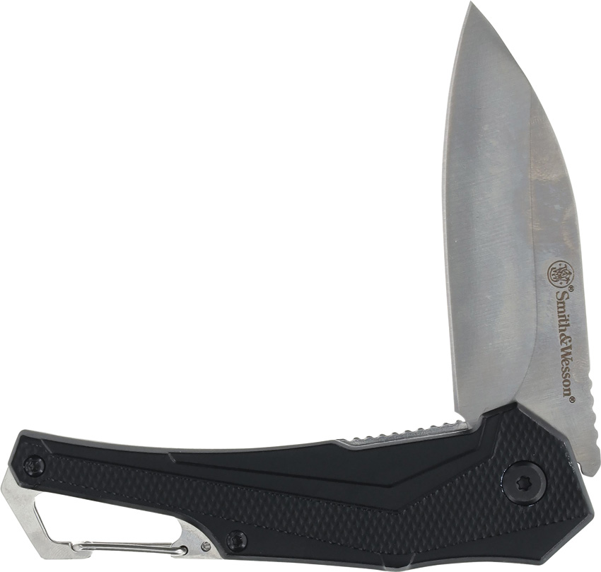 4″ (10.16cm) closed. 3″ (7.62cm) satin finish stainless blade. Black aluminum handle. Extended tang. Attachment clip. Boxed.