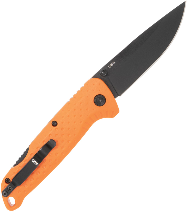 4.25″ (10.8cm) closed. 3″ (7.62cm) black PVD coated 5Cr15MoV stainless blade. Orange glass filled nylon handle. Thumb stud. Lanyard hole. Pocket clip. Clam packed.