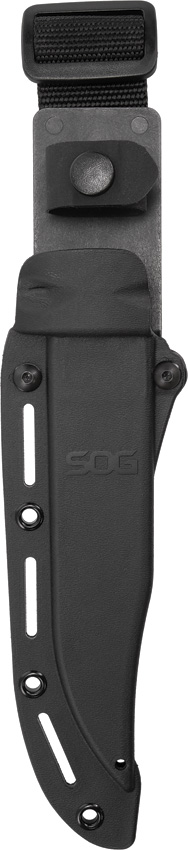 11″ (27.94cm) overall. 6.38″ (16.21cm) stonewash finish AUS-8 stainless blade. Black Kraton handle. Steel guard and pommel. Lanyard hole. Black Kydex sheath. Boxed.