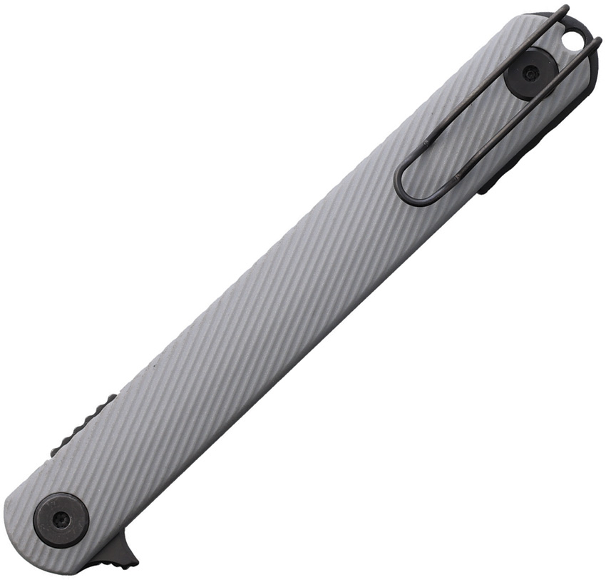 4.5″ (11.43cm) closed. 3.5″ (8.89cm) black PVD coated CPM S35VN stainless blade. Gray GFN handle. Extended tang. Pocket clip. Boxed.