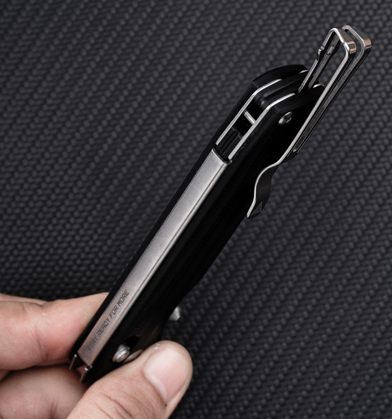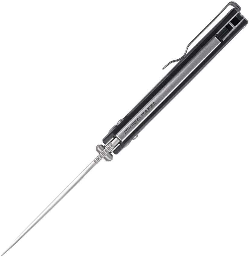 4.5″ (11.43cm) closed. 3.5″ (8.89cm) brushed finish D2 tool steel blade. Black G10 handle. Thumb stud. Pocket clip. Boxed.