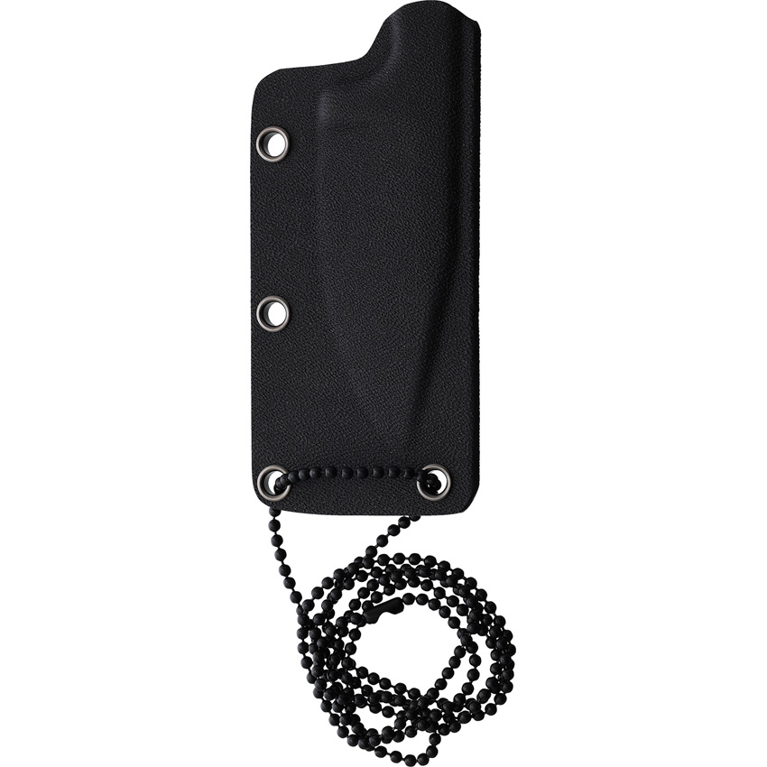 5.25″ (13.34cm) overall. 2.5″ (6.35cm) black stonewash finish VG-10 stainless blade. One-piece construction. Finger ring. Black Kydex neck sheath. Boxed.