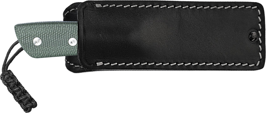 6.18″ (15.7cm) overall. 3.13″ (7.95cm) stonewash finish 14C28N Sandvik stainless blade. Green canvas micarta handle. Full tang. Lanyard hole. Black Smart Mag leather belt sheath. Comes in cardboard tube.