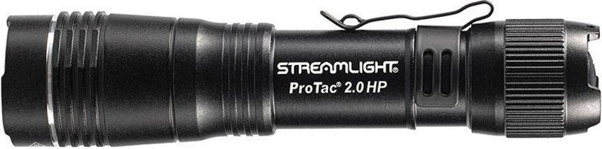 6.13″ overall. Water resistant. Impact resistant. Clip. Rechargeable. Tailcap switch. Strobe. Modes: High (2000 lumens, 2h 30m runtime); Medium (550 lumens, 5h runtime); Low (100 lumens, 31h runtime). 583m beam distance. Includes (1) SL-B50 li-Ion battery pack (included). Includes holster and USB-C charging cord. Aluminum construction. Color: Black. Boxed with hanging tab.