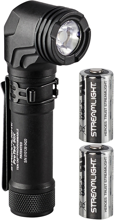4.38″ overall. Strobe. Water resistant. Impact resistant. Rechargeable. Clip. Modes: High (1000 lumens, 2.5h runtime); Medium (300 lumens, 4h runtime); Low (65 lumens, 21h runtime). 171m beam distance. Uses (1) Streamlight SL-B26 protected Li-Ion USB rechargeable battery pack (not included). TEN-TAP programmable. Anti-roll face cap. Requires (2) CR123A batteries (included). Black nylon belt sheath. Color: Black. Boxed with hanging tab.