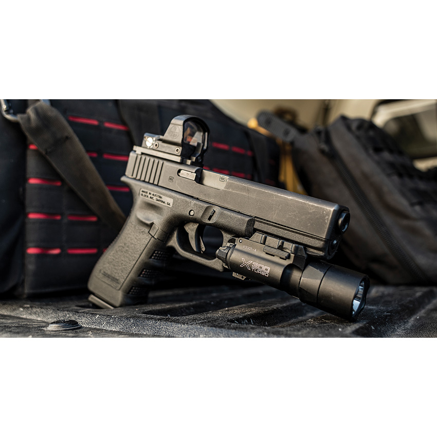 Designed to meet the needs of hard-use professionals, the Turbo Series version of our best-selling X300 handgun WeaponLight family delivers a stunning 66,000 candela of intense, tightly focused, far-reaching white light with a hot spot that is tremendously effective.