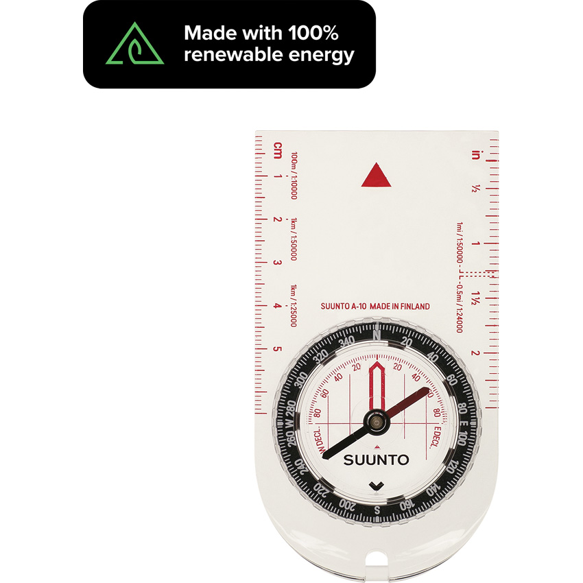 Highly stable, polarity resistant compass needle. Protractor with orienting lines for navigating with map. Liquid-filled capsule. Red scales. Fixed declination correction scale. NSN: 6605-20-003-4094, 6605-66-155-3798. Clam packed.