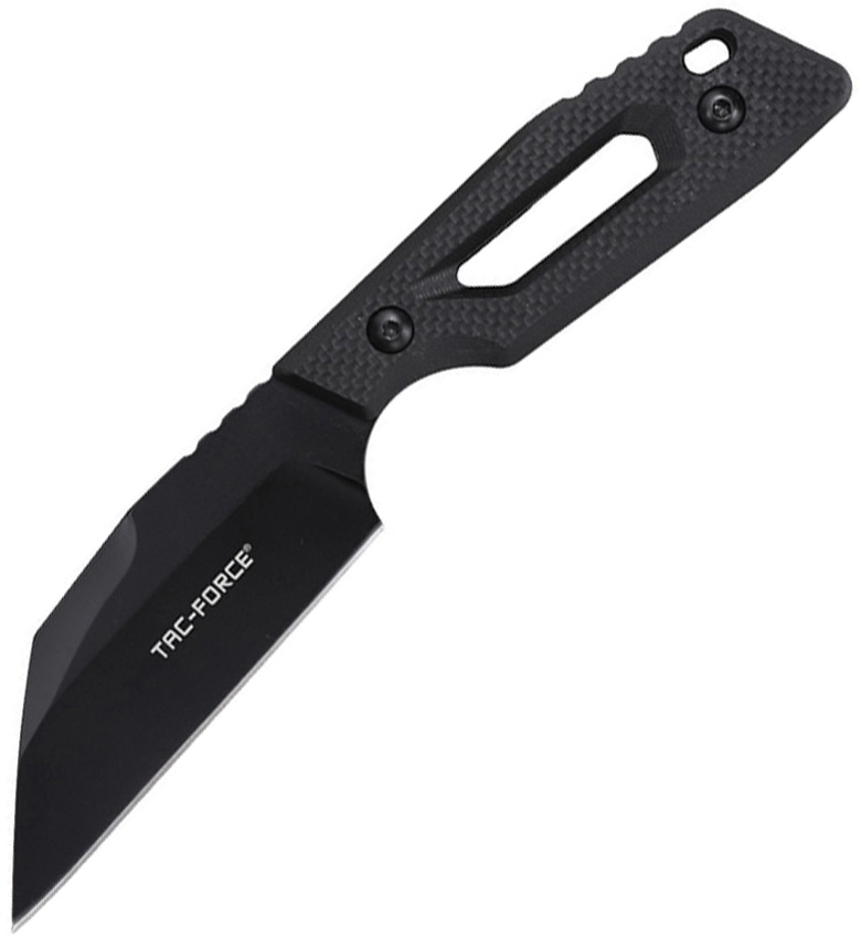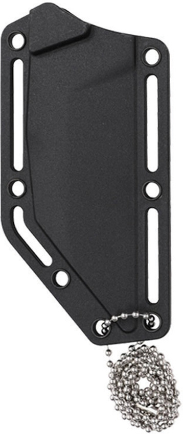 7.13″ (18.11cm) overall. 3.5″ (8.89cm) black oxide coated 3Cr13 stainless Wharncliffe blade. Black G10 handle. Full tang. Lanyard hole. Ball chain lanyard. Black nylon neck sheath. Boxed.