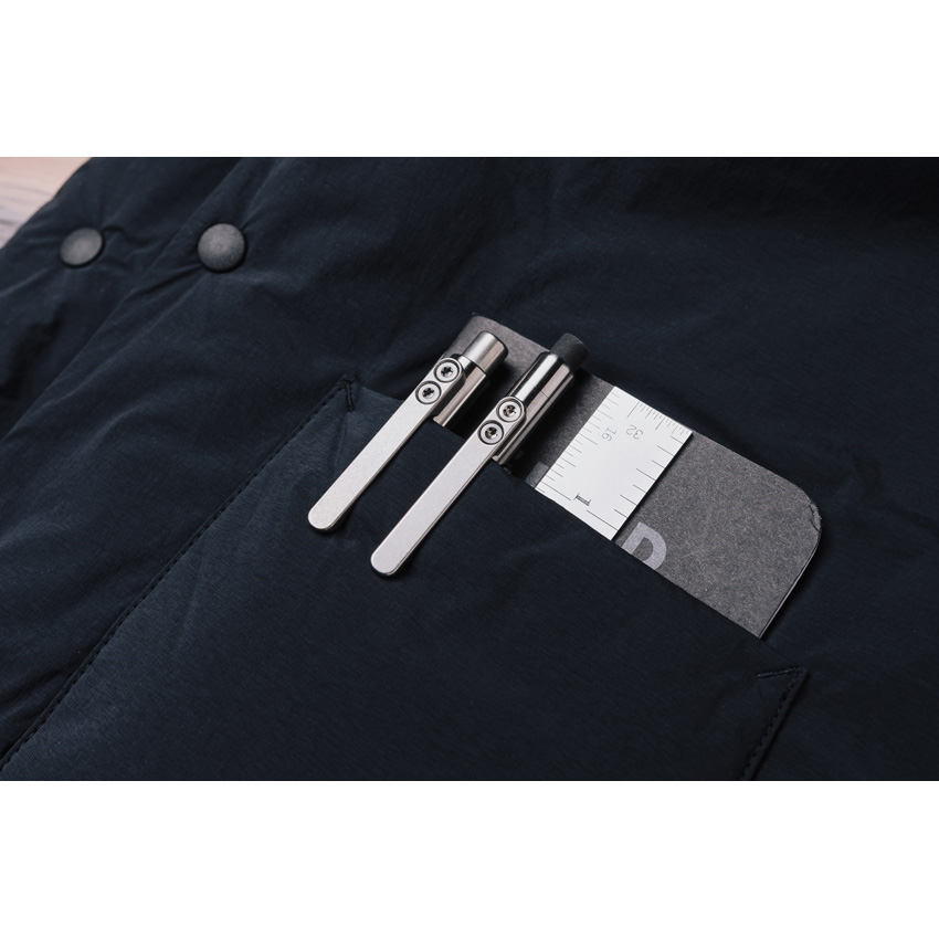 5.75″ overall. Pocket clip. Bolt action. 0.5mm or 0.7mm lead sizes. Comes with extra pack of lead. Side bolt with 6-32 thread pitch. Friction fit eraser (2 extra included). Titanium construction. Boxed.