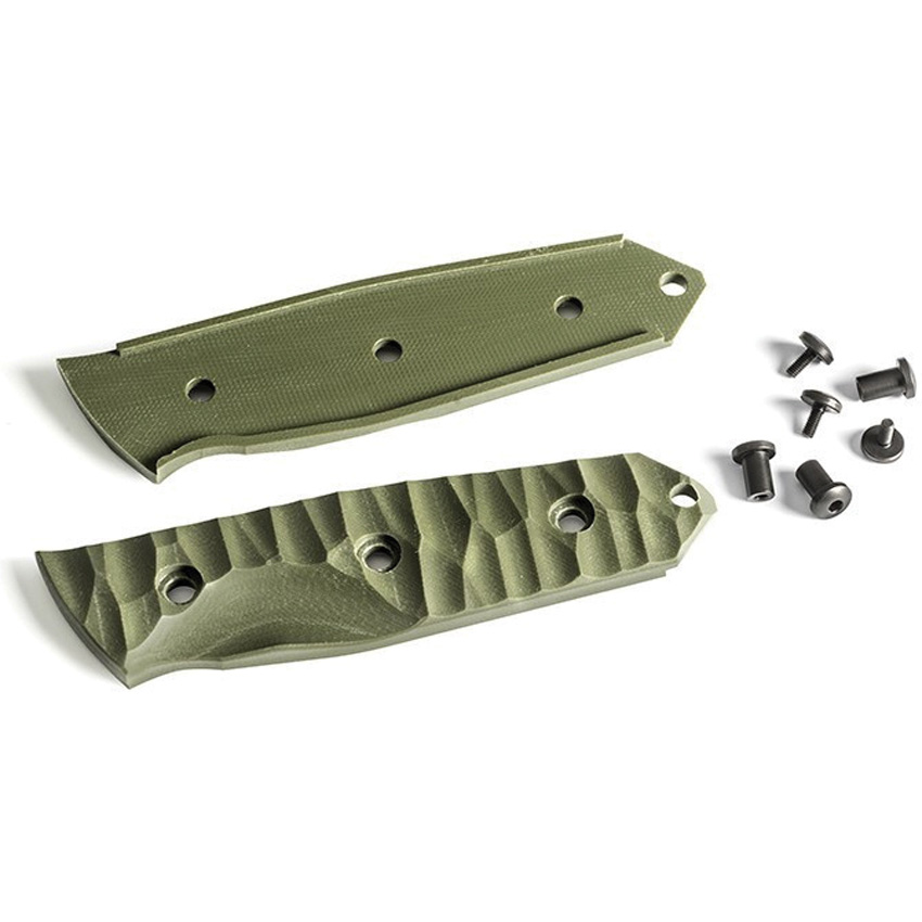 9.75″ (24.77cm) overall. 4.5″ (11.43cm) black PVD coated MOX steel blade. Green sculpted G10 handle. Full tang. Glass breaker. Lanyard hole. Black Kydex MOLLE compatible belt sheath. Storage case.