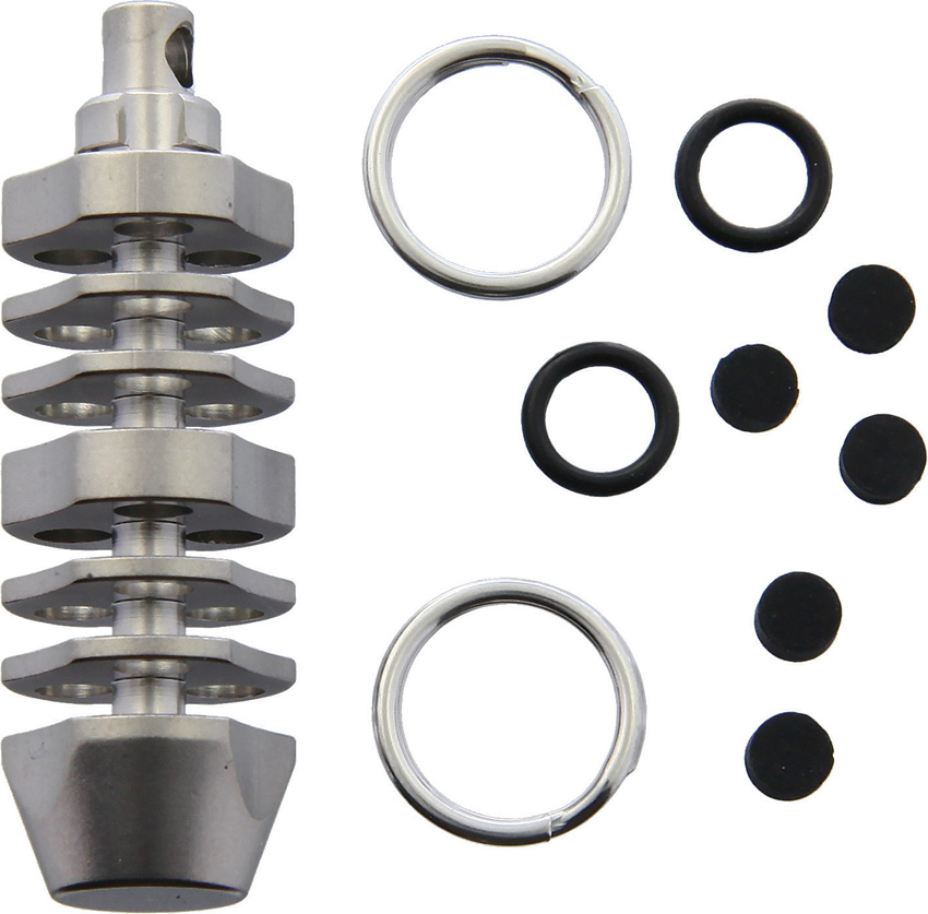 1.5″ overall. Suitable for mounting mulitple glass tritium vials (tritium vials are not included). Each bore can hold (1) 3mm x 23mm vials or (2) 3mm x 1mm vials. 0.472″ outside diameter. Comes with (5) rubber plugs for vial containment, (2) O-rings, and (2) split rings for attachment. Bulk packed.
