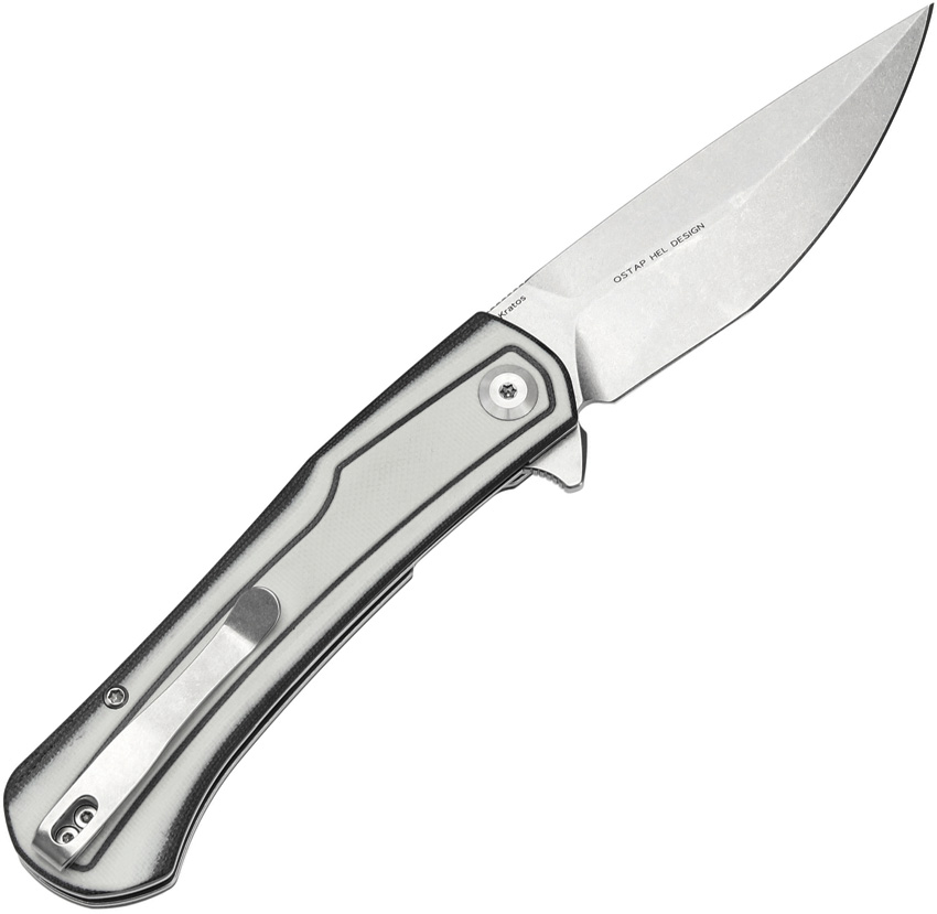 4.88″ (12.4cm) closed. 3.75″ (9.53cm) stonewash finish Nitro V steel drop point blade. Black and white G10 handle. Extended tang. Pocket clip. Boxed.