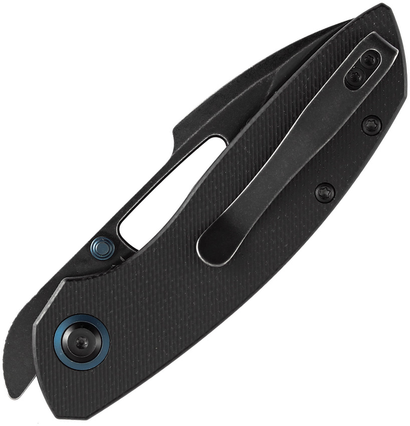 4.13″ (10.49cm) closed. 3″ (7.62cm) black stonewash finish 14C28N Sandvik stainless harpoon style blade. Black canvas micarta handle. Thumb pull. Thumb stud. Pocket clip. Extended tang. Boxed.