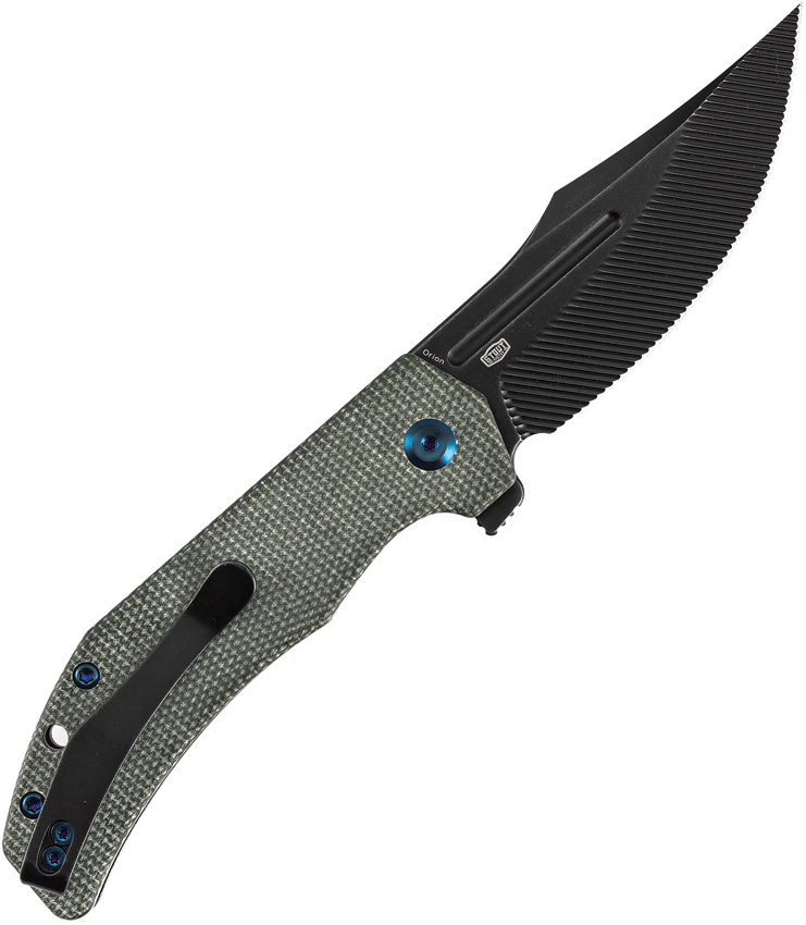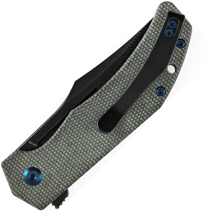 4.13″ (10.49cm) closed. 3.13″ (7.95cm) BlackWash finish Nitro V steel clip point blade. Green canvas micarta handle. Extended tang. Lanyard hole. Pocket clip. CNC milled blade. Boxed.